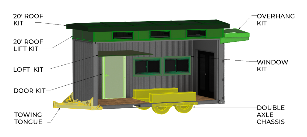 Container Trailers: Easily convert any shipping container into a road-legal trailer with a axle and tongue kit.
