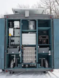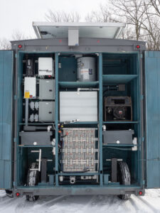 In partnership with In Situ, Insula brings the Expandable Solar Array Platform to market — a modular solar array deployable on any trailer or container. This diverse platform powers our Power Bunker (20′ insulated E-shelter with EMI/Faraday shielding) and Power Vault products. Triple-redundancy systems combine solar, battery, and generator with optional grid tie for resilient power anywhere — from mines and rural communities to northern Canada and disaster zones.