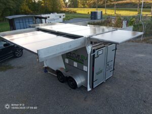 The Event Display Marketing Trailer is a fully customizable, portable platform designed to help businesses showcase their brand in a unique and impactful way. Built with Insula’s innovative kits, this trailer allows you to set up quickly and draw attention at trade shows, outdoor events, and more.