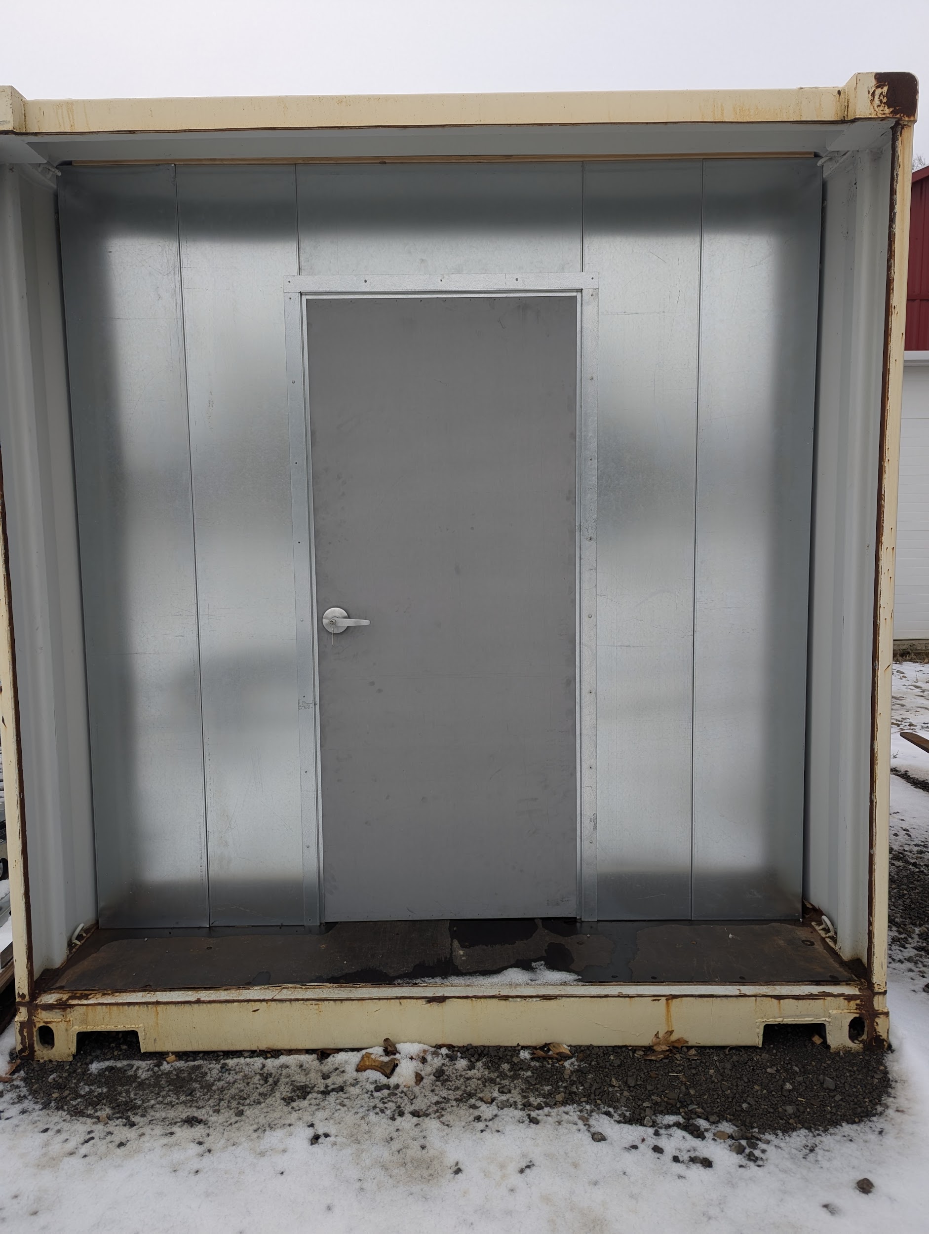 Divide container into separate accessible zones with this complete modular wall and door kit. Used to split the container into smaller rooms for bunkies, offices, washrooms, workshops, or storage spaces.